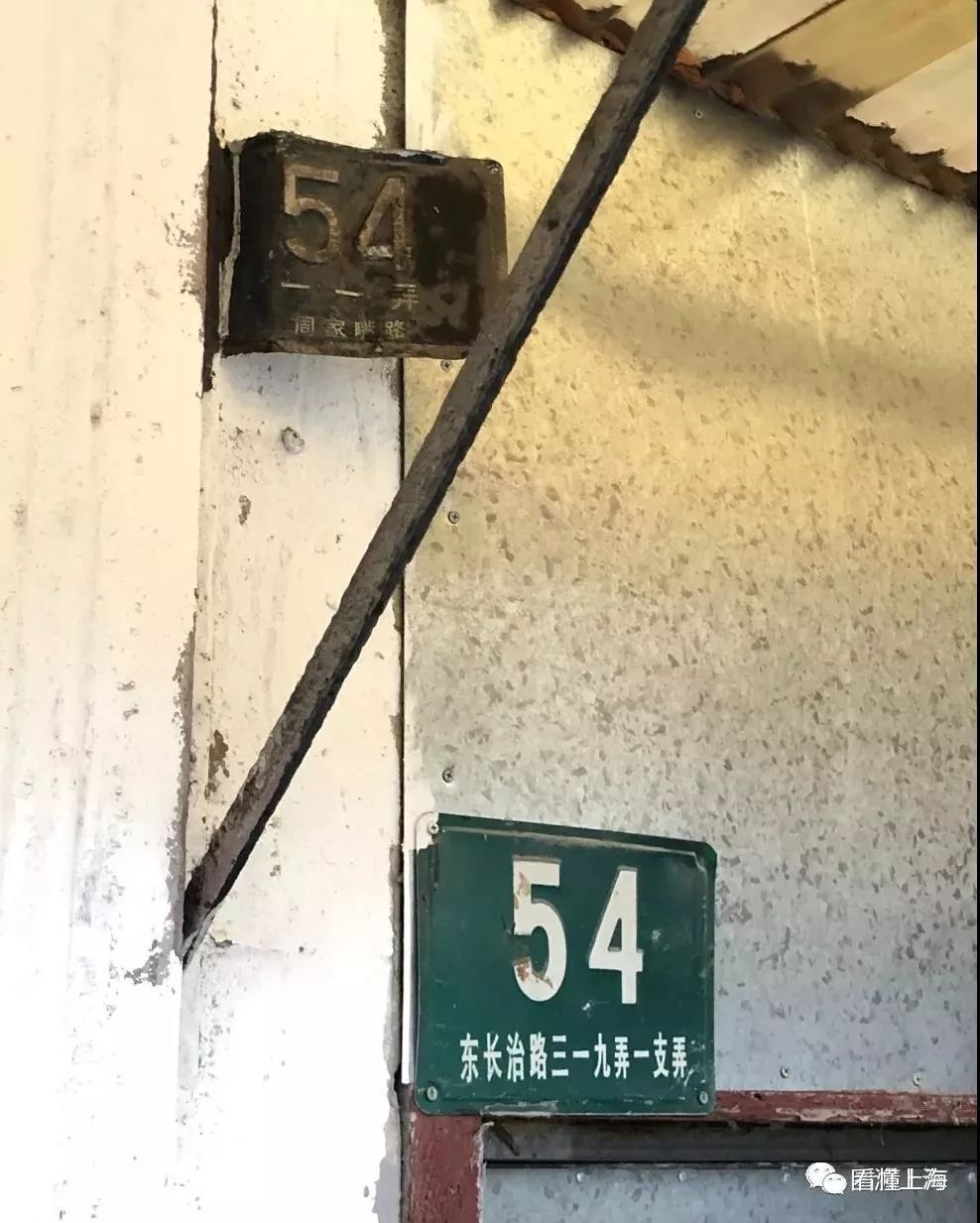 这段原周家嘴路的起始段目前还剩下一个旧式里弄,其门牌为“东长治路319弄1支弄”,因为已处于动迁状态,弄堂里早已空空荡荡,原本可通往西安路的通道也已被封堵。然而在弄口往里第一家人家的门口就发现了疑似残留的旧迹。这一家门口上方还贴着两块不同年代的门牌号,其中一块老的门牌上面布满了尘垢,从尘垢间露出的字迹里能依稀辨认出一个“周”字。用一块湿巾小心翼翼地擦去那些陈年老垢,底下的两行字迹完整地呈现出来:一一弄 周家嘴路,意即“周家嘴路11弄”。