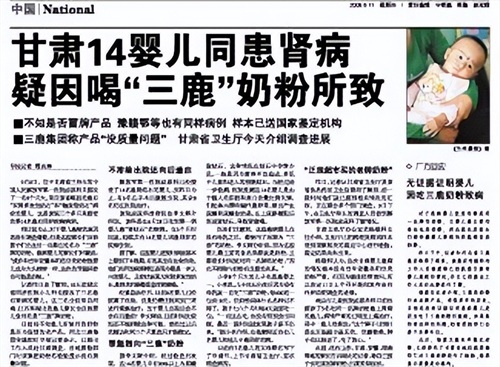 9月11日晚上9点,中国最有影响力网站新华社发布通稿:中国卫生厅高度怀疑三鹿集团奶粉受三聚氰胺污染。