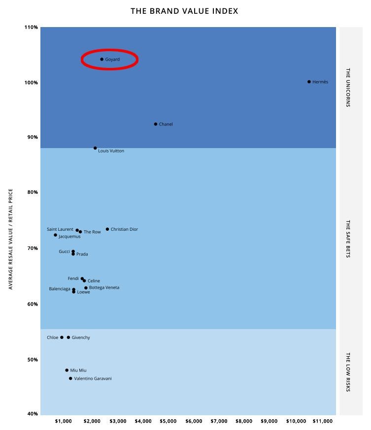 范主认识的一个Sa,上个月就表示Goyard新年过后要涨价,且涨幅很可能在15%左右(最终涨幅不到10%)。加上开头提到的The Real Real的年度报告,其保值率稳居第一,再次印证了Goyard越买越涨的江湖传说。
