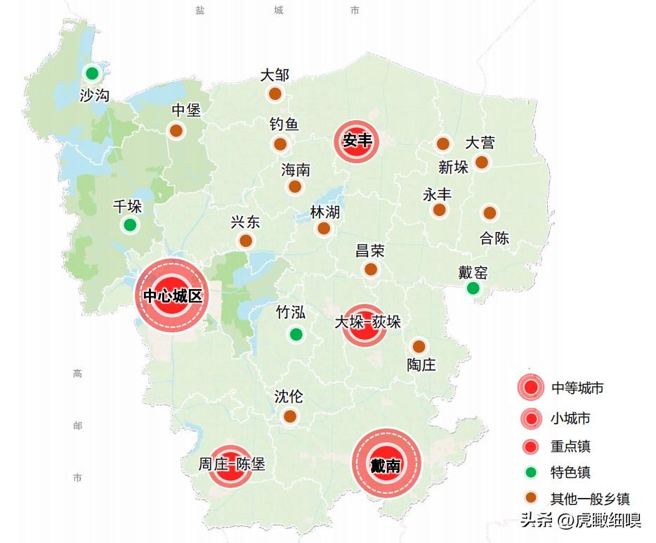 重点镇:安丰、大垛—荻垛、周庄—陈堡:强化综合服务和特色产业园功能,提升对周边城镇的带动能力。