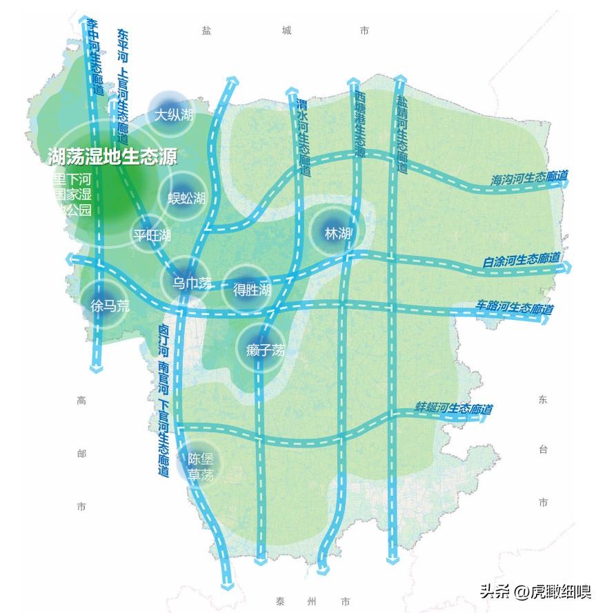 一源:西北湖荡湿地生态源:里下河湖泊湖荡集中分布的市域西北片湖荡湿地。