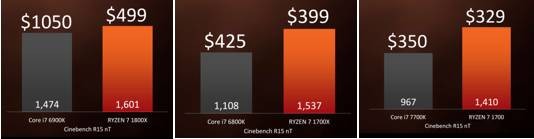 ●锐龙 AMD Ryzen 7 1800X对Core i7 6900K