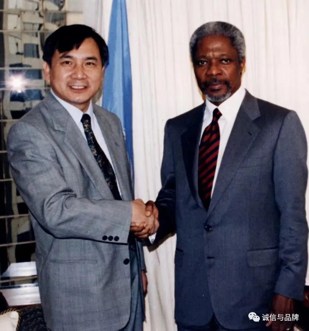 上图:联合国前秘书长安南(右)在任内会见中国著名企业家李晓华(左)