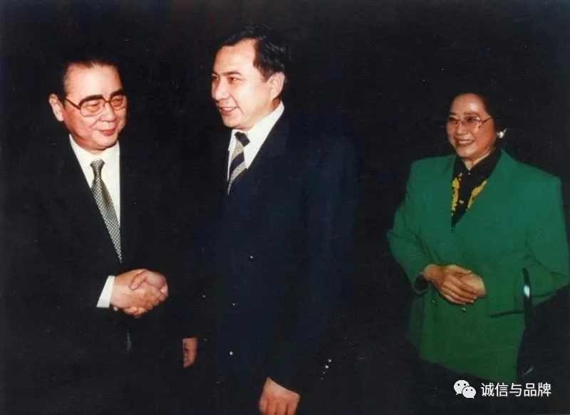 上图:时任国务院总理李鹏(左)和夫人朱琳(右)亲切慰问李晓华委员。