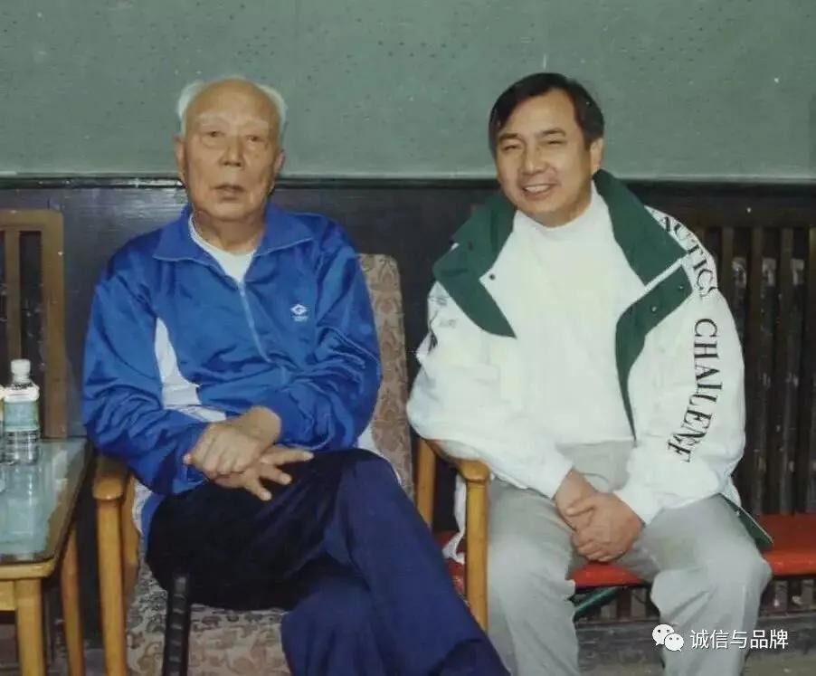 上图:李晓华(右)当选为九届全国政协委员期间,与时任全国人大常委会委员长万里(左)合影。