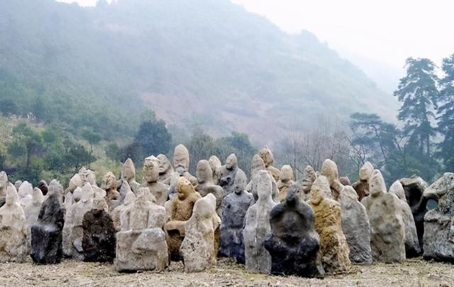 这里四处都能见到许多石雕和人像,它们就散落在山岭和池塘的周围。