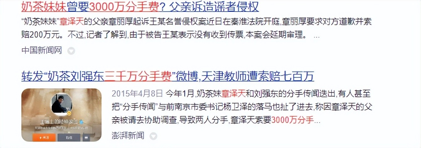 “3000万分手费”、“因财产闹翻”、“章强恋是上市炒作”。