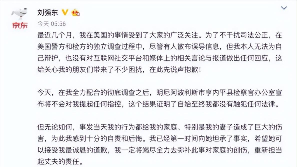 这是刘强东发布的道歉宣言。