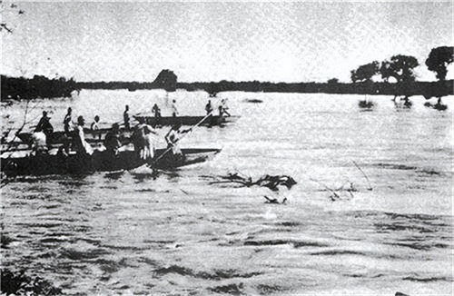 黄河水奔涌而来,没有任何思想准备的老百姓陷入了一片汪洋之中,造成了巨大的人员和财物损失。