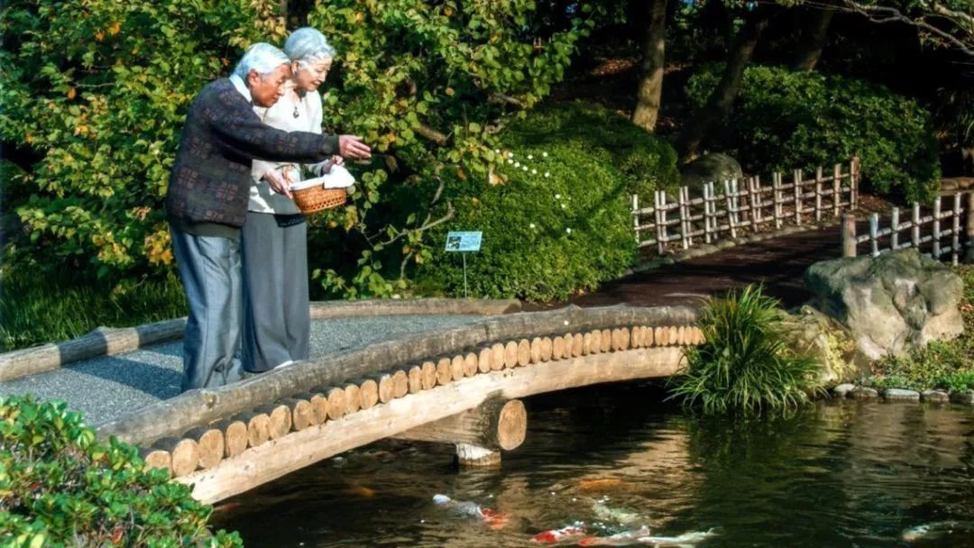 明仁天皇和妻子一起喂鱼