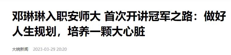 2.《邓琳琳入职安师大 首次开讲冠军之路:做好人生规划,培养一颗大心脏》大皖新闻,2023年3月29日发布;