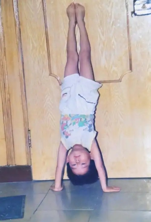 所以,那年年仅六岁的邓琳琳,在家无聊的她便常常跑到体操训练场玩,在玩耍的同时,她也开始模仿哥哥他们的动作,做起了“小陪练”。