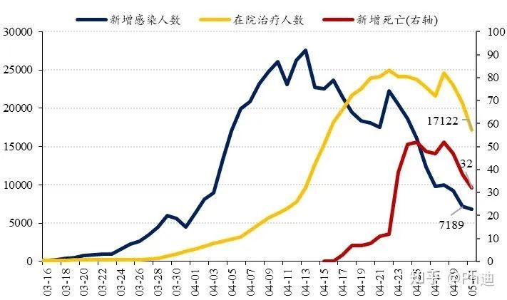 上海峰值为4月13日,目前新增的感染人数呈现明显下降趋势,考虑上海的人口基数大、感染人数多,粗略把从峰值到社会面清零的时间设为东北两市的两倍,那就是约46天,那就意味着,在5月底前将迎来社会面清零,或者更早。