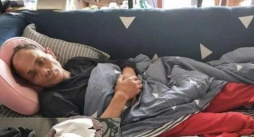如今却沦落到这般窘境,营养不良、肌肉暴凸,身上仅剩一件单薄的棉衣,遮蔽不住由于癌症而日渐消瘦的身躯。