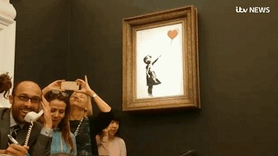 班克斯早年涂鸦在拍卖现场突然“自毁”,反而吸引全世界媒体的曝光