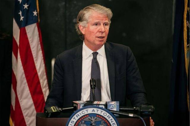 在周一的庭审结束后,纽约曼哈顿区检察长塞勒斯·万斯(Cyrus R. Vance Jr.)出席新闻发布会。