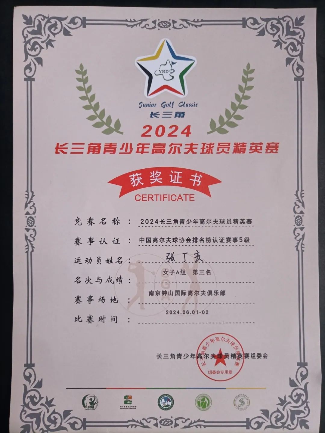 2024长三角青少年高尔夫球员精英赛女子A组季军