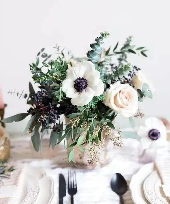 白色的银莲花就像是一颗明亮的珠宝,迷人而又闪耀~银莲花最特别的是它独特的黑色花蕊,漂亮优雅的花色搭配黑色花蕊,美而不艳,看到她就能想到亭亭玉立的美人,不急不躁缓缓开放。