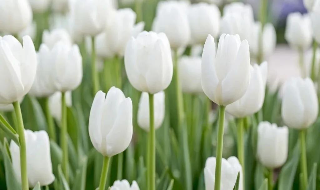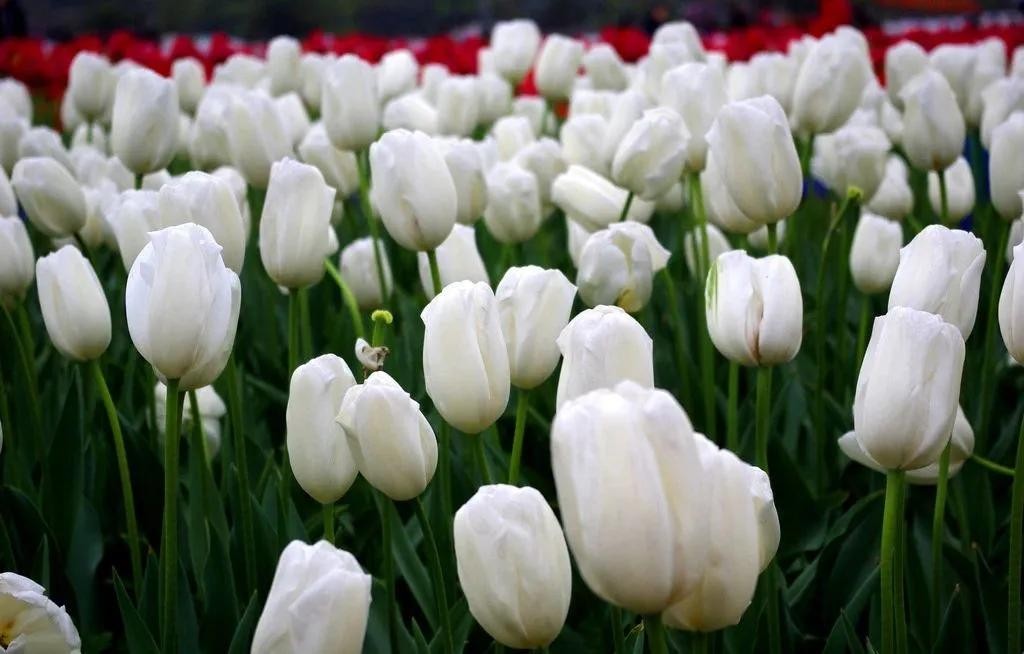 白色的郁金香,是郁金香花中的素衣少女,在众多鲜艳妖娆的郁金香花中,是最特别的一位,素净、清纯。其他颜色的郁金香都是争艳的,一个比一个色彩浓郁,唯有白色郁金香,一身洁白,清雅脱俗。