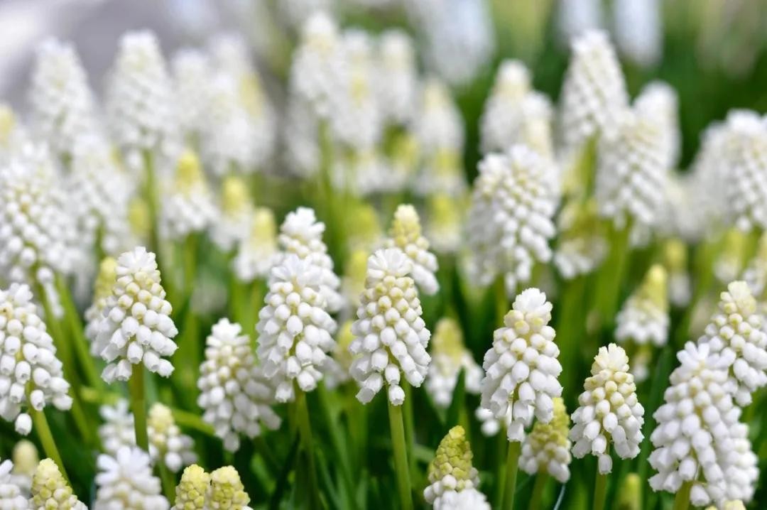 白色的葡萄风信子是不是像一个小精灵一般,洁白的颜色使他小巧的身形显得愈发可爱了。它长了一副葡萄的样子,看着格外的精致可爱,纯净的白色带人进入如梦如幻的境地。