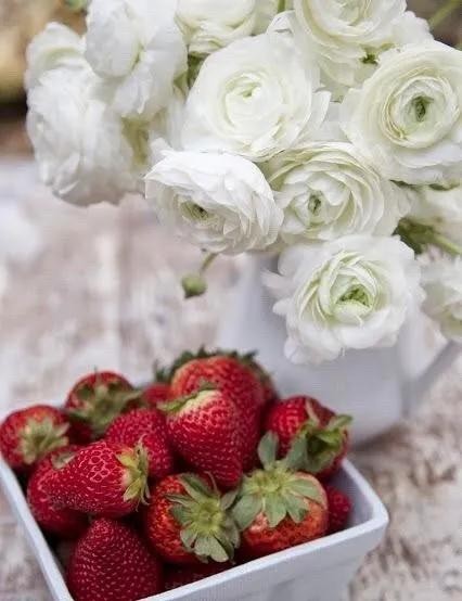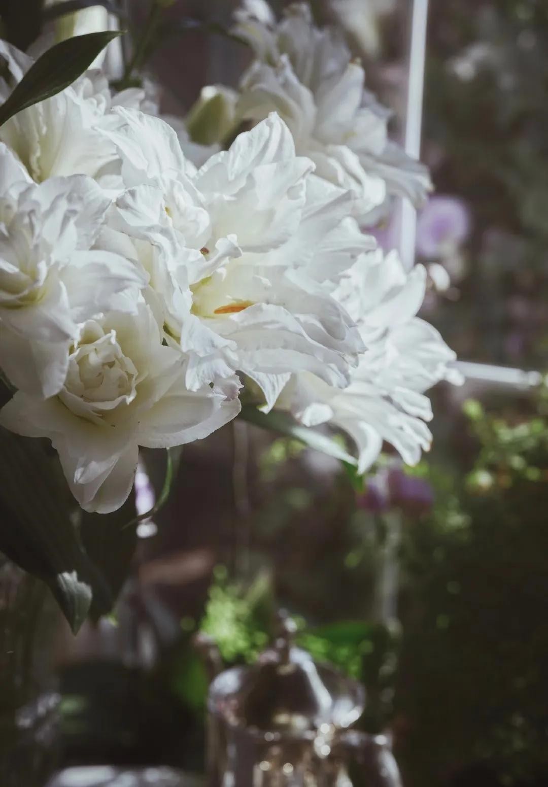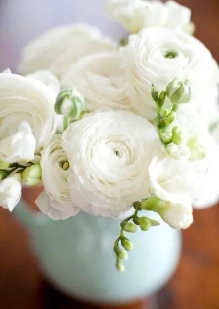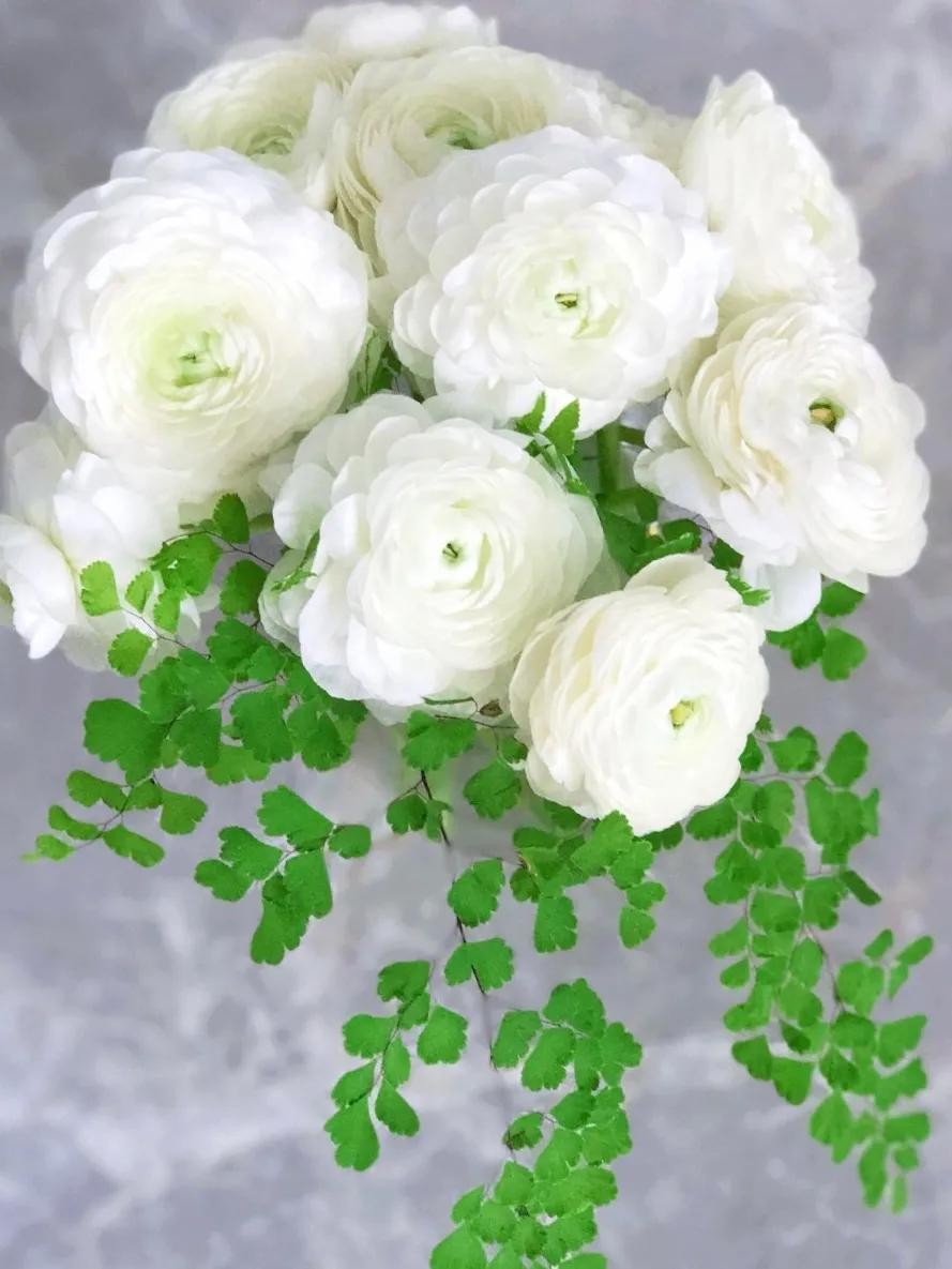 白色的花毛茛有着不输芍药牡丹的优雅感,它层层叠叠的花瓣散发着独特的唯美气质,让人移不开视线。