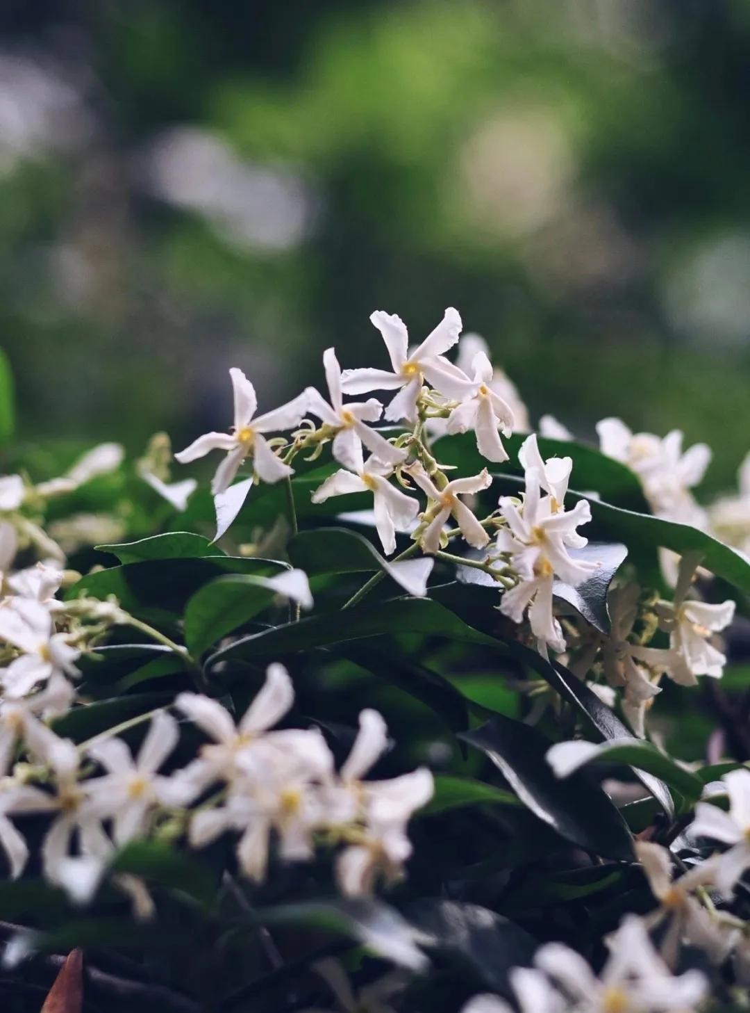 白色的风车茉莉正如它的名字一样,像是一个个小风车挂在枝头~仿佛一阵风吹来都能看到它转起来的样子~簇簇的白色花朵像一片流转的星空、千万颗星辰,同时绽放,同时飞旋,同时幻化成无数游离的光点,在微风中浮动着、旋转着