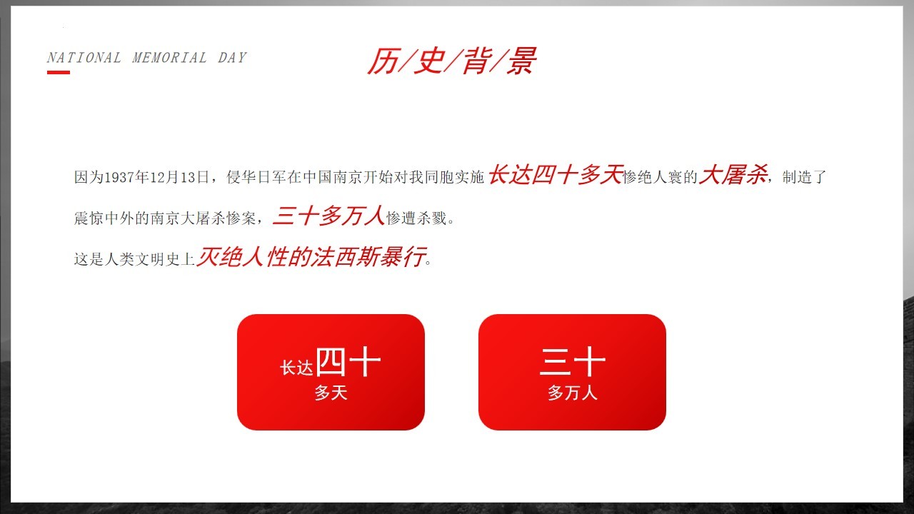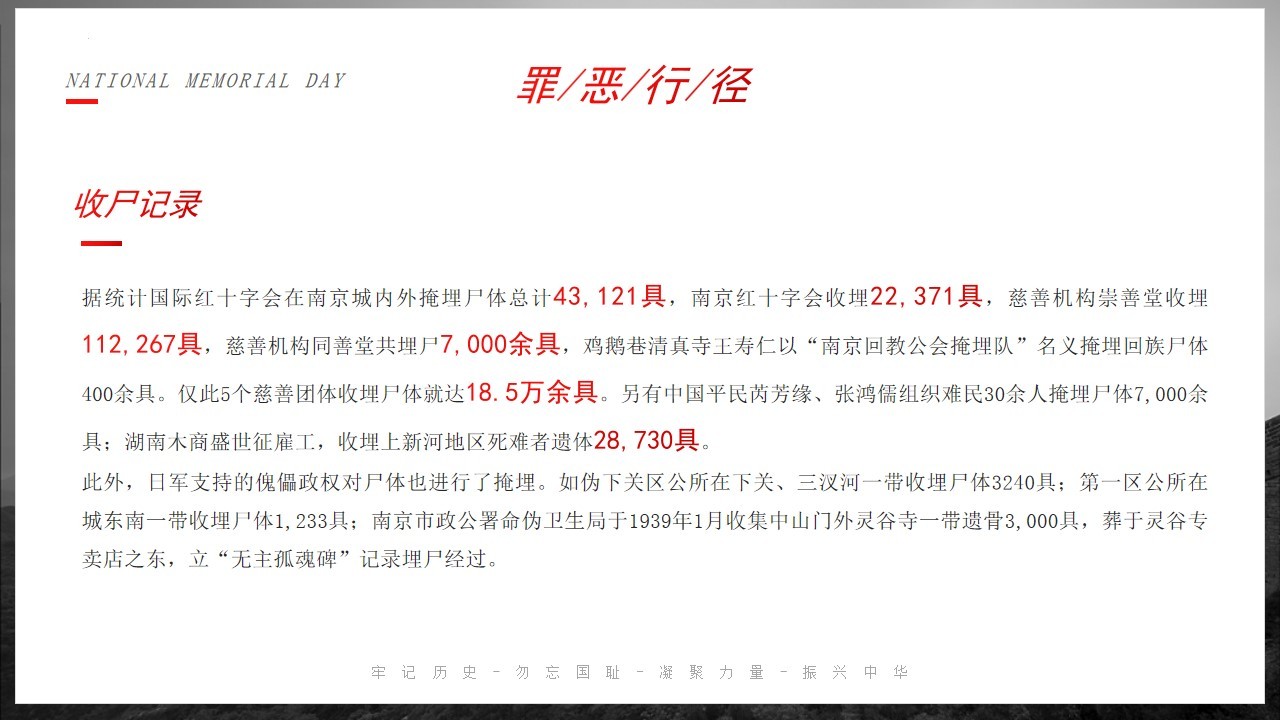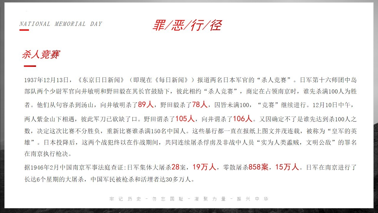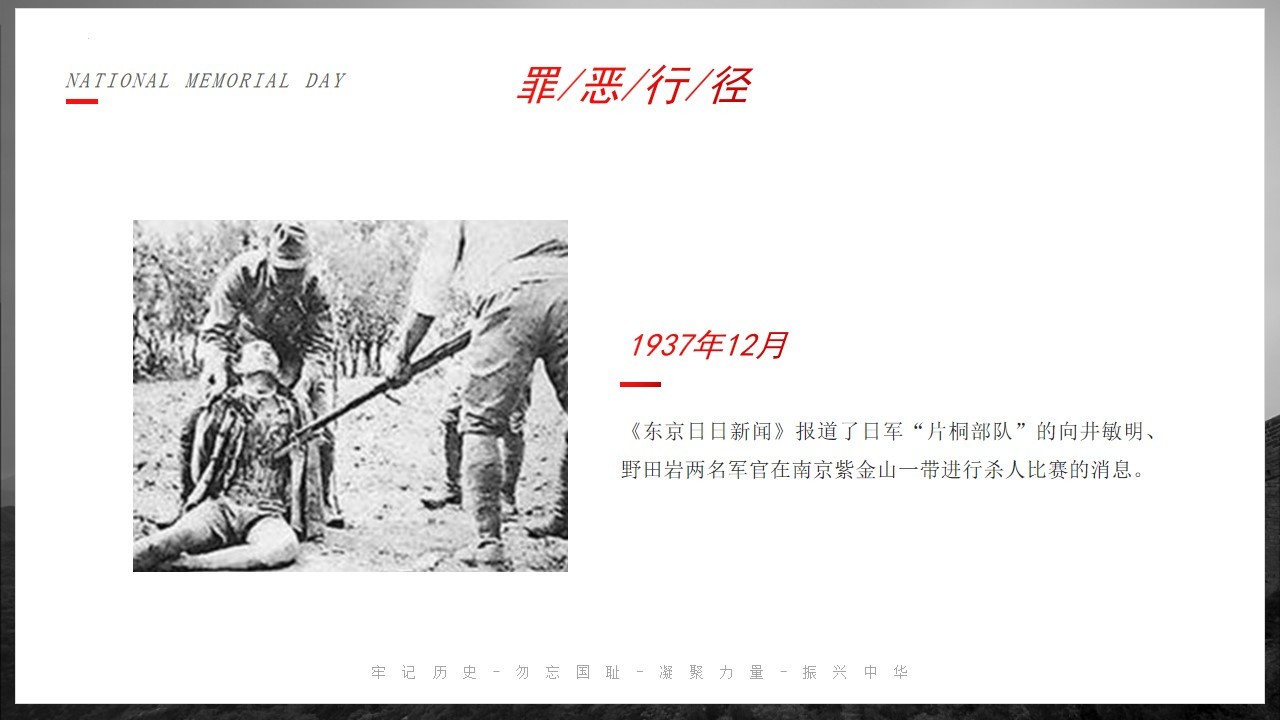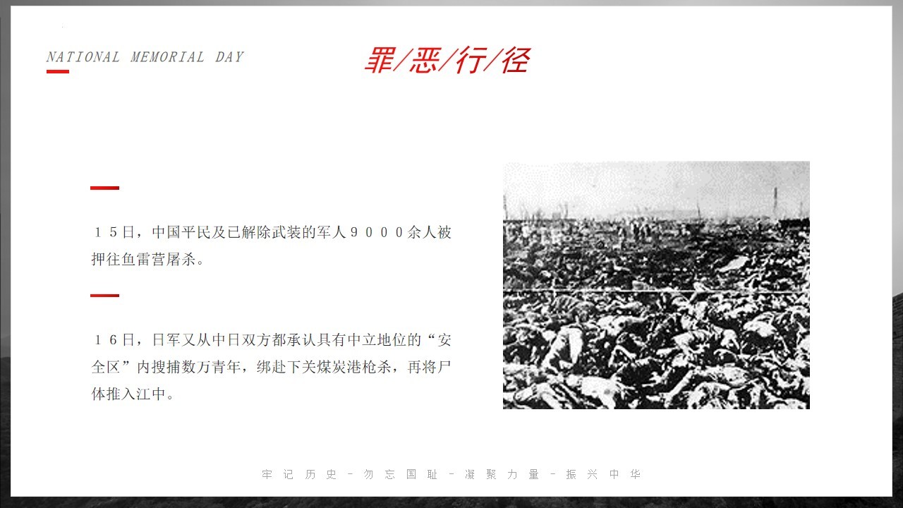 侵华倭寇,掳掠烧杀,横尸遍野,血染长江。三十余万,生灵涂炭,炼狱六周,哀哉国殇。
