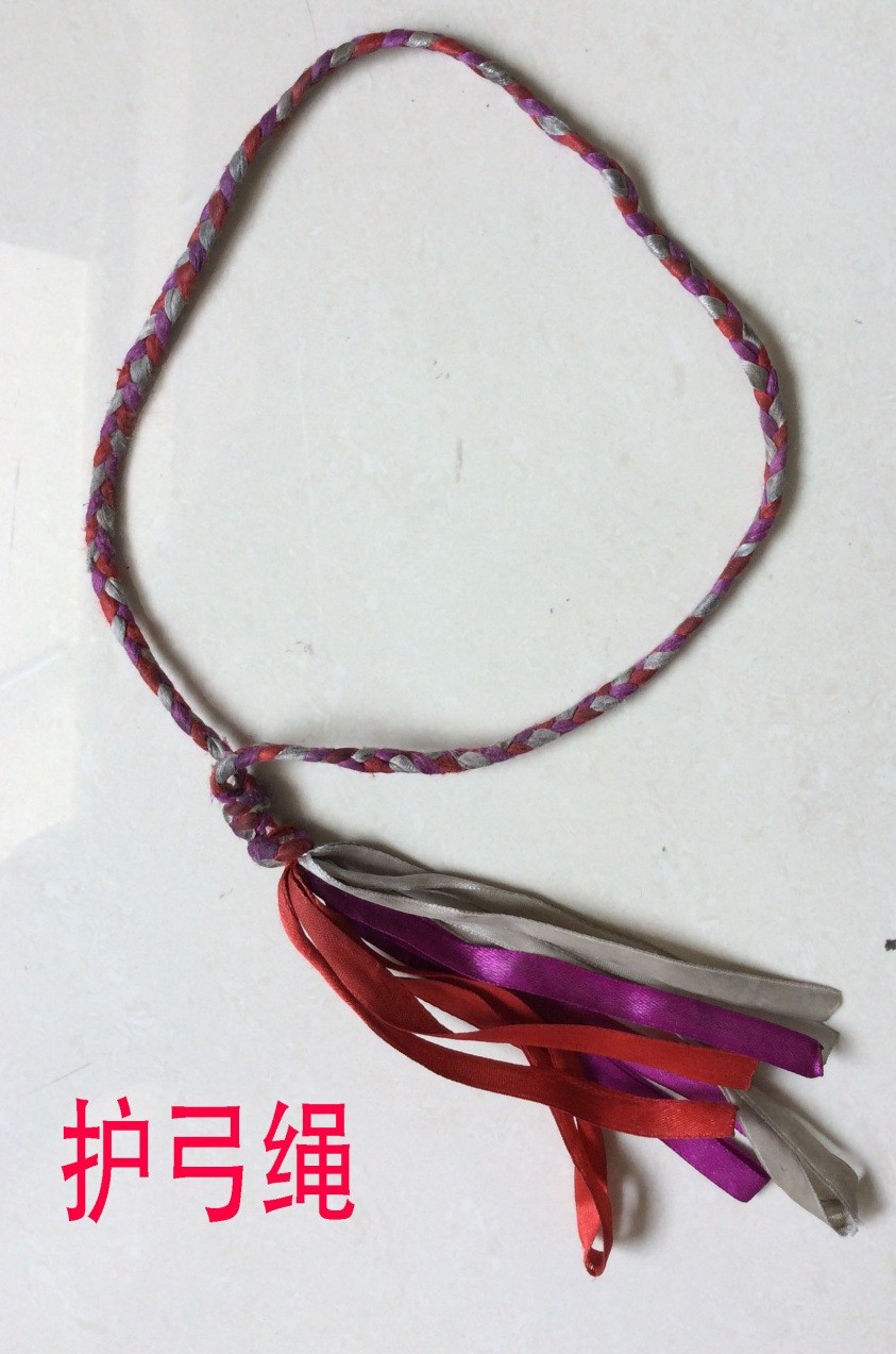 很多选手都是推弓,放箭后为了不让弓从射手手中掉落,护弓绳的作用就显现出来了。复合弓的护弓绳一般都是压在减震杆下面的。