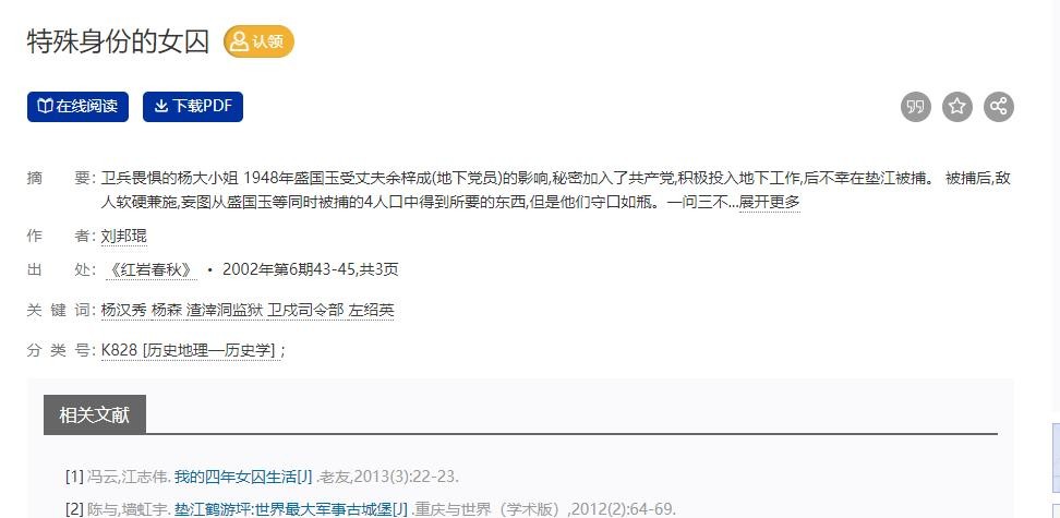 参考资料:[1]刘邦琨.特殊身份的女囚[J].红岩春秋,2002(6):43-45